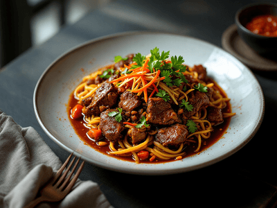 Rendang Daging is a legendary Indonesian dish hailing from the Minangkabau people of West Sumatera. Renowned for its deep, complex flavors and tender beef, Rendang is often crowned as one of Indonesia’s most treasured culinary icons. Traditionally prepared during festive occasions and family gatherings, this slow-cooked beef curry is infused with a rich blend of aromatic spices, coconut milk, and toasted coconut, resulting in a dish that is both bold and comforting. What makes Rendang Daging truly special is its unique balance of heat, sweetness, and savory notes, alongside a melt-in-your-mouth texture. The slow cooking technique allows the spices to deeply penetrate the meat, making every bite an explosion of flavor. By using leaner cuts of beef and reducing coconut milk, you can enjoy an authentic and healthier version of this Indonesian classic without compromising on taste. Perfect for dinner, Rendang Daging showcases Indonesia’s rich culinary heritage, bringing a taste of Sumatera to your table.
